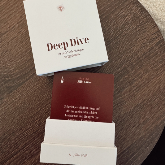 Normaler Preis €15,99Normaler PreisStückpreis / pro€19,99Verkaufspreis €15,99Auf Amazon bestellenSaleDeep Dive – Das Spiel für tiefe Verbindungen